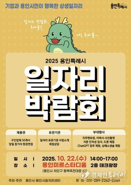 경제인투데이 류현민 기자 | 용인특례시는 오는 22일 오후 2시부터 5시까지 용인미르스타디움 2층 덱(deck) 광장에서 2025년 하반기 일자리박람회를 개최한다고 17일 밝혔다.
