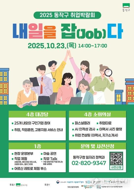 경제인투데이 류현민 기자 | 동작구가 오는 23일 오후 2시 구청 신청사에서 2025 취업박람회 ‘내일을 잡(Job)다’를 개최한다고 밝혔다.