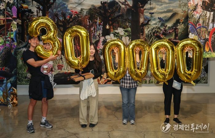 청주공예비엔날레조직위원회는 지난 18일 오후 4시 5분, 30만 돌파 축하이벤트를 진행했다. 개장 시간부터 이어진 단체 관람객과 가족 단위 관람객 행렬에 이어 30만 번째로 입장한 주인공은 청주 복대동에 거주하는 김경목 씨 가족이었다.
