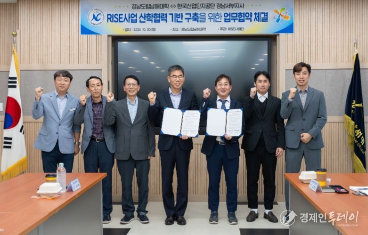 경제인투데이 류현민 기자 | 경남도립남해대학(총장 노영식)은 20일 오후 2시 교내 혁신학습지원실에서 한국산업단지공단 경남서부지사와 ‘경남 지역혁신중심 대학지원체계(RISE) 사업’ 추진을 위한 업무협약을 체결했다고 밝혔다.