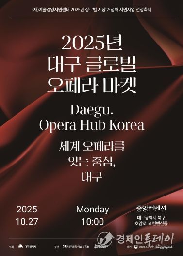 경제인투데이 류현민 기자 | (재)대구문화예술진흥원 대구오페라하우스는 문화체육관광부와 예술경영지원센터가 추진하는‘2025 장르별 시장 거점화 지원사업’에 선정돼, 오는 10월 27일 중앙컨벤션홀(대구 북구 호암로 51)에서 ‘2025 대구 글로벌 오페라 마켓’을 개최한다.
