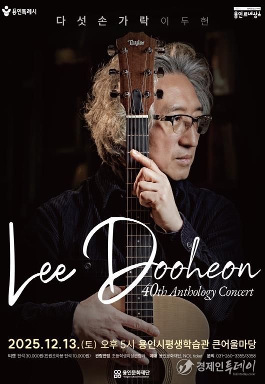 경제인투데이 류현민 기자 | (재)용인문화재단은 오는 12월 13일 오후 5시, 용인시평생학습관 큰어울마당에서 ‘다섯손가락 이두헌 40th Anthology Concert’를 개최한다.