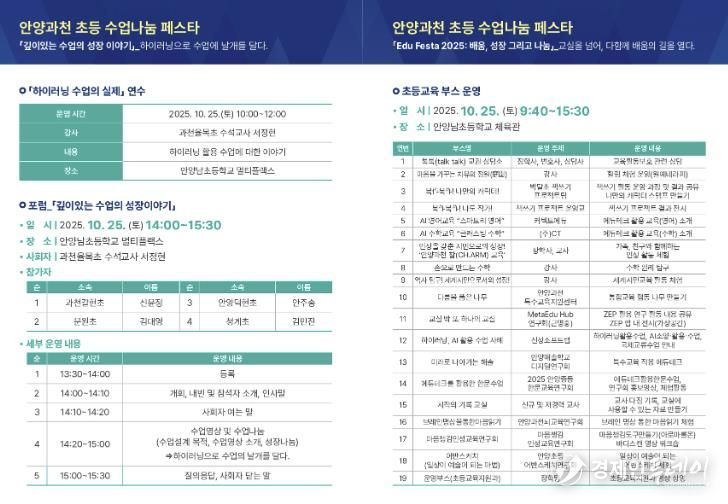 이번 에듀-페스타(Edu-Festa)는 하반기 수업나눔 한마당인 10.15.~10.24. 8일간 6가지 수업주제*로 17회 이뤄진 수업 공개와 수업 나눔을 마무리하는 포럼이 운영되고, 2025년 초등교육뿐 아니라, 유아 및 특수교육을 포함하는 교육지원 활동을 통합한 성과나눔의 자리로 그 의미가 크다