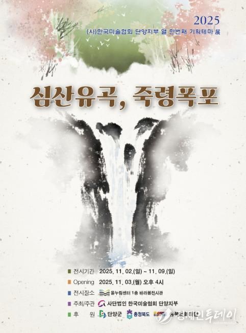 경제인투데이 류현민 기자 | 한국미술협회 단양지부가 단양의 자연과 예술의 조화를 주제로 한 기획테마전 ‘심산유곡-죽령폭포’를 개최한다.