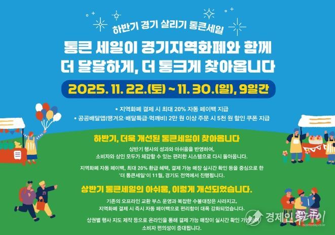 2025년 상반기 통큰 세일은 지난 6월 21일부터 29일까지 9일간 도내 396개 상권이 참여한 대규모 소비 촉진 행사다. 소비 인증 페이백, 경기도 공공배달애플리케이션 할인, 상인회 자율 행사 등 다양한 프로그램이 함께 운영됐다.