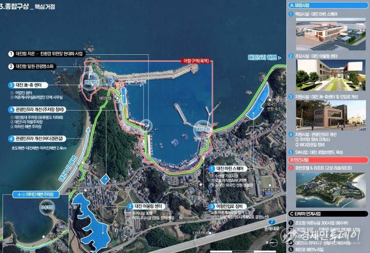 ‘대진항 어촌경제 도약형 조성사업’은 국가어항과 지방어항을 중심으로 재정사업과 민간투자를 연계해 지역경제의 핵심 거점을 조성하는 것을 목표로 하고 있다.