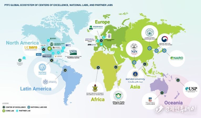식품주기율표 이니셔티브에는 우리나라를 포함한 4개의 ‘국가 연구실 허브(National Lab Hub)’, 9개의 ‘연구 우수센터(Center of Excellence)’, 12개의 ‘협력연구실(Collaborating Lab)’이 참여하고 있다.