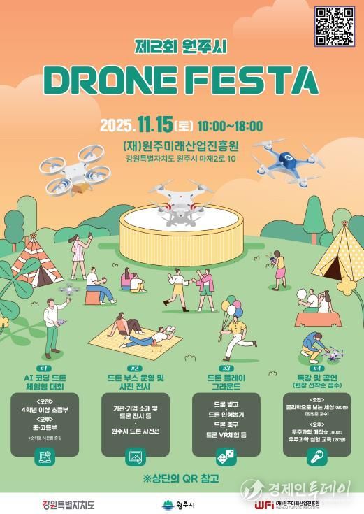 경제인투데이 류현민 기자 | 원주시는 오는 15일 오전 10시부터 오후 6시까지 원주미래산업진흥원에서 ‘제2회 원주시 드론페스타’를 개최한다.