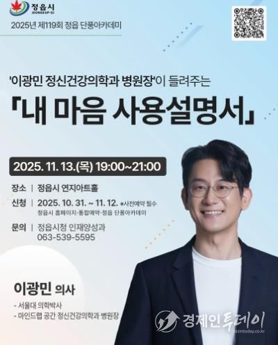 경제인투데이 류현민 기자 | 정읍시는 오는 13일 저녁 7시 연지 아트홀에서 제119회 단풍아카데미를 개최한다.