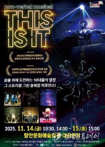 경제인투데이 류현민 기자 | 함안군은 오는 11월 14일과 15일 이틀간 함안문화예술회관 대공연장에서 비언어(넌버벌) 퍼포먼스 ‘디스 이즈 잇(THIS IS IT)’ 공연을 연다고 밝혔다.