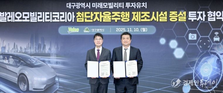 경제인투데이 류현민 기자 | 대구광역시는 11월 10일 시청 동인청사에서 발레오모빌리티코리아㈜(대표 김민규)와 첨단 자율주행 센서의 대량 양산체계 구축을 위한 공장 증설 투자협약을 체결했다.