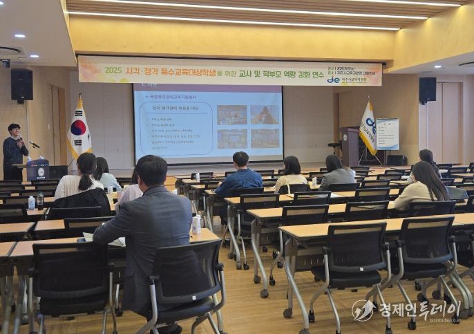 경제인투데이 류현민 기자 | 제주시교육지원청 특수교육지원센터는 7일 제주시교육지원청 대회의실에서 제주시 관내 특수교사와 일반교사, 보호자 등 32명을 대상으로 ‘시청각 특수교육대상학생을 위한 교사 및 학부모 역량 강화 연수’를 실시했다.
