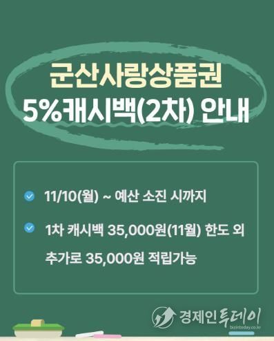 혜택은 11월 10일부터 예산이 소진될 때까지 시행되며, 모바일형 및 카드형 군산사랑상품권을 사용하는 시민이 대상이다.