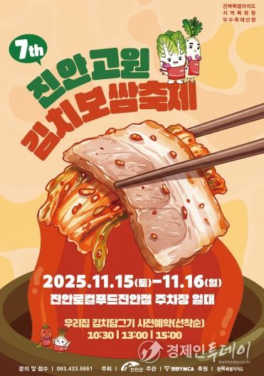 경제인투데이 류현민 기자 | 진안군은 오는 11월 15일에서 16일까지 이틀간 로컬푸드 직매장 진안점(진안군 진안읍 학천변길 37-9) 일원에서 ‘진안고원 김치보쌈 축제’를 개최한다.