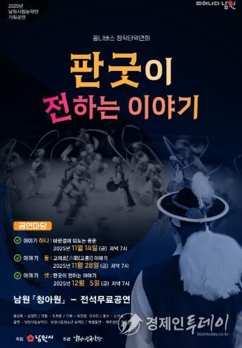경제인투데이 류현민 기자 | 남원시립농악단이 11월 14일, 11월 28일, 12월 5일 매회 금요일 오후 7시 남원 청아원 공연장에서 옴니버스 창작타악연희 ‘판굿이 전하는 이야기’를 선보인다.