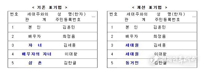 경제인투데이 류현민 기자 | 앞으로는 등·초본 상 가족 관계 표기로 인한 재혼 가정의 사생활 노출을 방지하기 위해 세대주와의 관계 표기 방식이 개선된다.