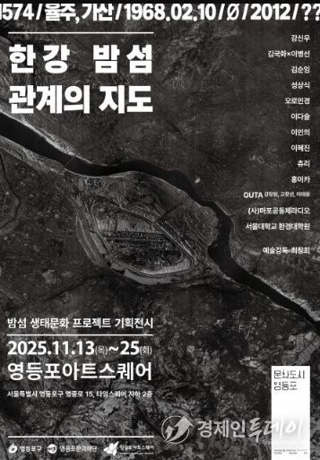 경제인투데이 류현민 기자 | 영등포문화재단이 ‘밤섬 생태문화 프로젝트’ 기획전시 ‘한강 밤섬 / 관계의 지도’의 오프닝을 개최했다. 이번 행사는 최호권 영등포구청장을 비롯해 참여 예술가, 밤섬 부군당 보존회 주민, 지역 활동가 등 100여 명이 참석하며 성황리에 마무리됐다.