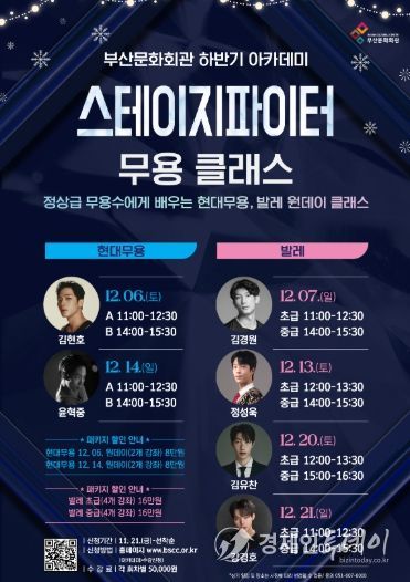 오는 12월, 총 6일 차로 진행되는 이번 강좌는 발레와 현대무용 분야에서 활발히 활동 중인 '스테이지 파이터' 참가 무용수들이 직접 지도해 높은 기대를 모은다. 수강생들은 전문 무용수들의 지도를 가까이에서 경험하며 무용의 매력을 보다 깊이 체감할 수 있다.