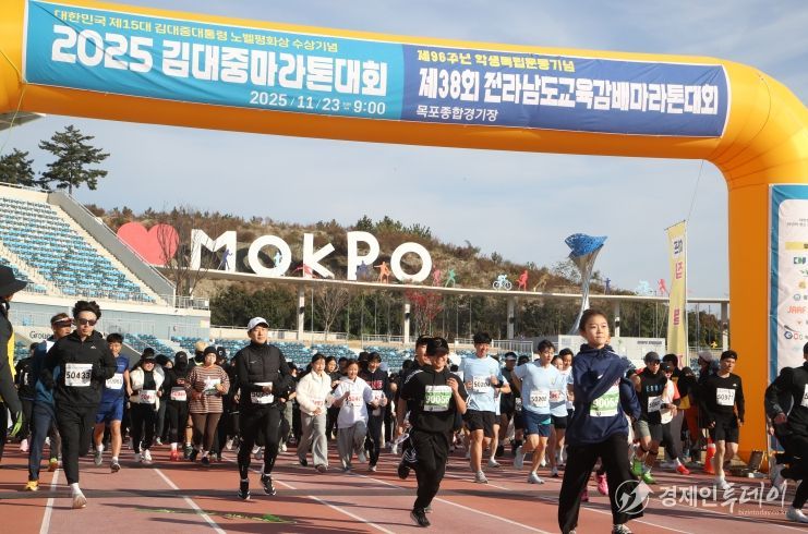 경제인투데이 류현민 기자 | 전라남도교육청은 23일 목포종합경기장 일원에서 약 1만여 명이 참여한 가운데 열린 ‘제96주년 학생독립운동기념 제38회 전라남도교육감배 마라톤대회·2025 김대중 마라톤대회’가 성황리에 마무리됐다고 밝혔다.