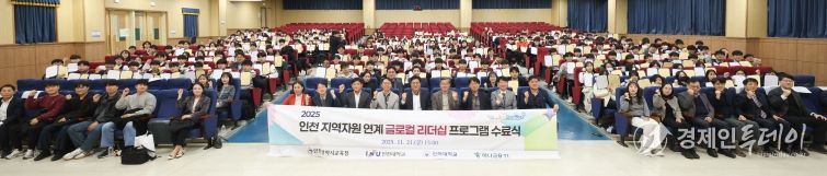 경제인투데이 류현민 기자 | 인천광역시교육청은 21일 고등학교 20개교 세계시민교육 동아리 학생과 교원, 학부모, 대학 지도교수, 국제기구 관계자, 하나금융TI 멘토 등 350여 명이 참석한 가운데 ‘2025 인천 지역자원 연계 글로컬 리더십 프로그램’ 수료식을 개최했다.
