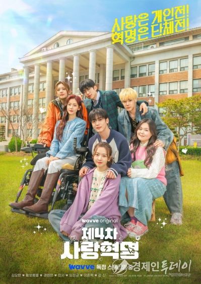 웨이브 오리지널 ‘제4차 사랑혁명’(연출 윤성호·한인미, 극본 송현주·김홍기 등 창작집단 ‘송편’, 제작 스토리몹·스튜디오CR·빈지웍스, 공동제작투자 PONY CANYON)측은 9회 공개를 앞둔 24일, 눈부신 청춘들의 다채로운 케미스트리가 설렘을 자극하는 한강대학교 완전체 포스터를 깜짝 공개했다.