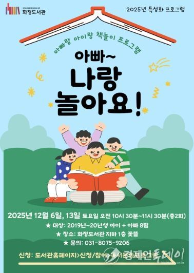 경제인투데이 류현민 기자 | 고양특례시 화정도서관은 오는 12월 6일, 13일 오전 10시 30분, 화정도서관 지하 1층 꽃뜰에서 특성화 프로그램 ‘아빠~ 나랑 놀아요!'를 운영한다.