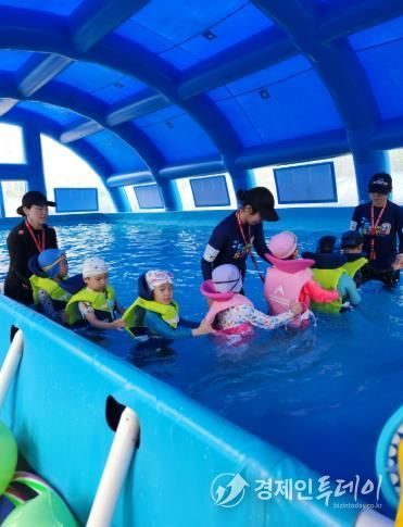 교육은 유아의 발달 단계에 맞춰 물 적응 훈련, 건강 체력 활동, 기본 수영 동작 실습, 위기 상황 대처법 등으로 구성됐다.