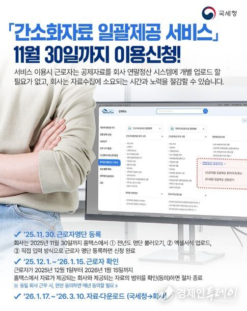 경제인투데이 류현민 기자 | 「간소화자료 일괄제공 서비스」 11월 30일까지 이용신청!