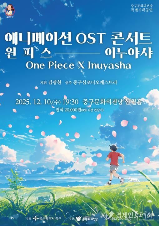 경제인투데이 류현민 기자 | 울산 중구문화의전당이 오는 12월 10일 오후 7시 30분 중구문화의전당 함월홀에서 '애니메이션 OST 콘서트-원피스X이누야샤' 기획공연을 개최한다.
