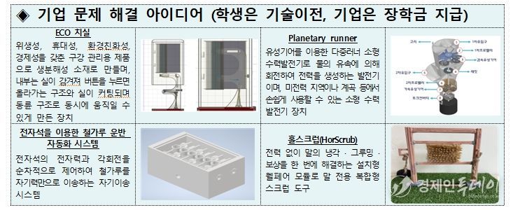 산업현장 과제를 해결한 아이디어 21건은 기업으로 기술이전 되어 활용될 예정으로, 해당 아이디어를 제시한 학생들은 기술 이전료를 장학금으로 지원받게 된다.