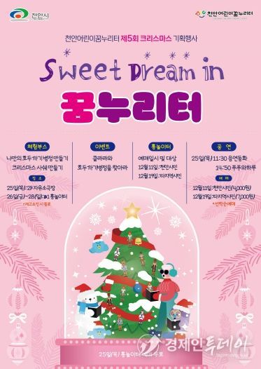 경제인투데이 류현민 기자 | 천안어린이꿈누리터(관장 조삼혁)는 오는 12월 25일부터 28일까지 제5회 크리스마스 기획행사‘Sweet Dream in 꿈누리터’를 진행한다고 밝혔다.