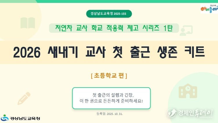 경제인투데이 류현민 기자 | 경상남도교육청은 22일부터 도내 초등학교 신규 교사의 안정적인 학교 정착을 지원하기 위한 『2026 새내기 교사 첫 출근 생존 키트』를 도내 전 초등학교에 배포한다.