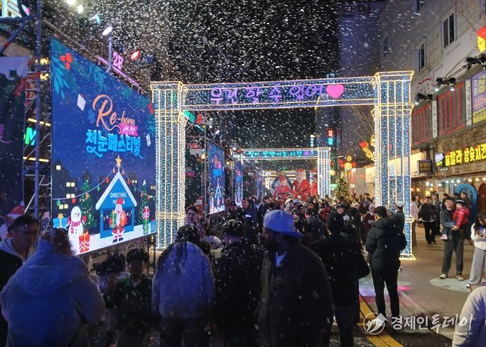 경제인투데이 류현민 기자 | 거제시 고현 빛의 거리에서 열린 ‘고현 리본(Re-born), 첫눈 페스티벌’이 많은 시민과 관광객의 참여 속 성황리에 개최되며, 겨울철 도심 상권 활성화 가능성을 확인했다.