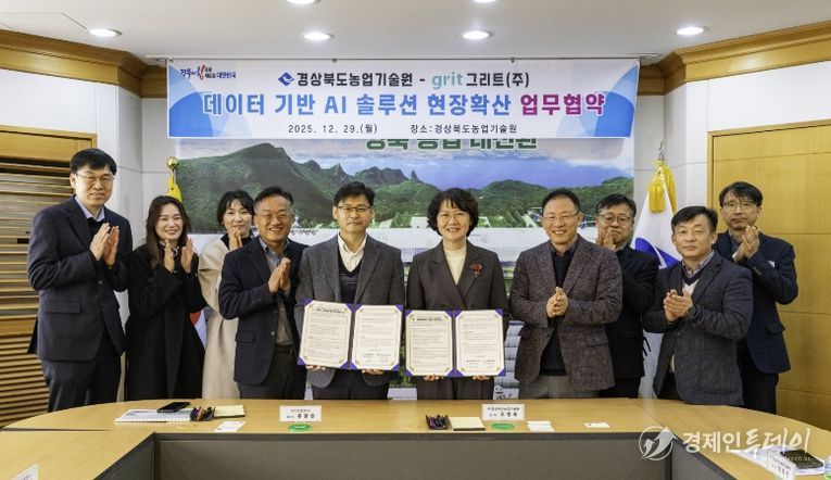 경제인투데이 류현민 기자 | 경상북도농업기술원은 그리트(주)와 경북지역 스마트농업의 디지털 전환을 앞당기기 위해 힘을 모은다.