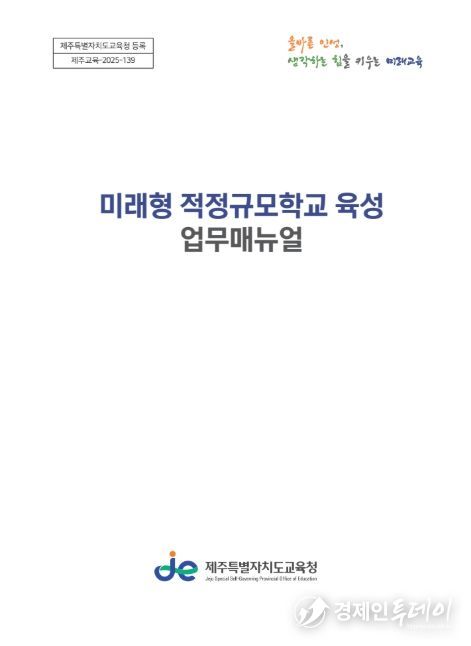 경제인투데이 류현민 기자 | 제주특별자치도교육청은 31일 적정규모학교 육성과 소규모학교의 지속 가능한 학교 운영을 체계적으로 지원하기 위해 ‘미래형 적정규모학교 육성 업무지침서’를 제작하고 도내 작은 학교와 교육지원기관에 보급했다.