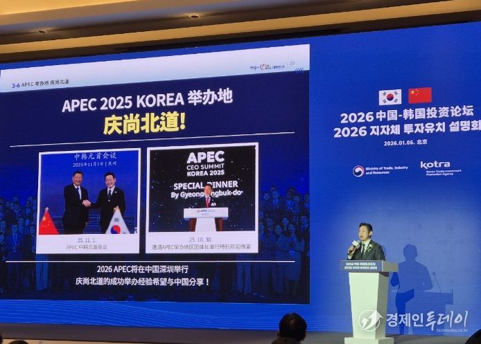 경제인투데이 류현민 기자 | 경상북도는 6일 중국 베이징에서 열린 산업통상부 주관 지자체 투자유치 설명회에 참가해 중국 기업과 투자자를 대상으로 경상북도의 투자환경과 미래 협력 전략을 집중적으로 소개했다.