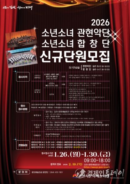 경제인투데이 류현민 기자 | 김천시 문화예술회관은 김천 문화예술의 미래를 이끌어 갈 시립예술단 신규단원을 모집한다.