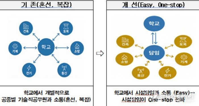 그동안 학교 현장에서는 시설물에 문제가 발생할 경우 건축, 토목, 전기, 기계 등 공종별로 세분화된 교육지원청 담당자를 일일이 확인해 협의해야 하는 불편을 겪어왔다. 특히 시설 노후화와 안전 점검 강화로 인해 전문적인 기술 행정 지원에 대한 현장의 요구가 지속적으로 제기되어 왔다.