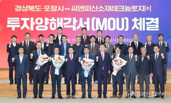 경제인투데이 류현민 기자 | 포항시와 경상북도는 19일 포항시청 대회의실에서 씨앤피신소재테크놀로지㈜와 5,000억 원 규모의 투자양해각서(MOU)를 체결했다.