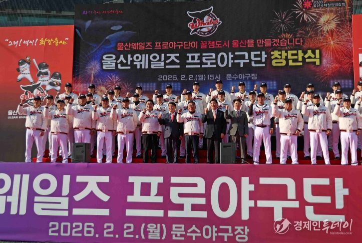 경제인투데이 류현민 기자 | 울산광역시(시장 김두겸)는 2월 2일(월) 울산 문수야구장에서 '울산 웨일즈' 공식 창단식을 개최했다.