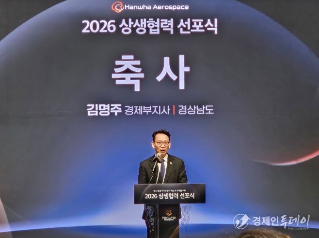 경제인투데이 류현민 기자 | 경상남도는 3일 오후 한화에어로스페이스 창원3사업장 R&D센터에서 열린 ‘한화에어로스페이스 2026 상생협력 선포식’에 참석해 방위산업 분야 대·중소기업 상생협력 확산을 위한 민·관 협력 의지를 재확인했다.