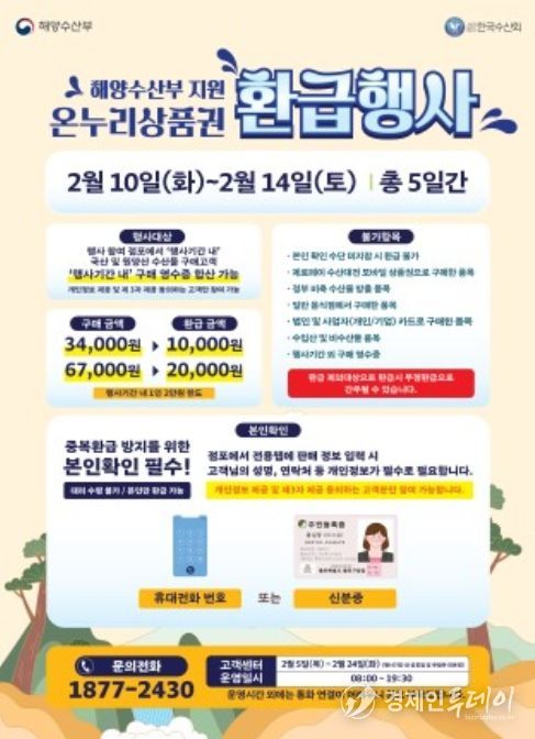 경제인투데이 류현민 기자 | 경상남도는 설 명절을 맞아 국내산 수산물 소비 촉진과 전통시장 활성화를 위해 2월 10일부터 14일까지 도내 20개 전통시장에서 ‘온누리상품권 환급행사’를 추진한다고 밝혔다.