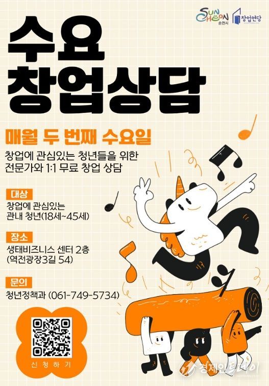 경제인투데이 류현민 기자 | 순천시가 창업에 어려움을 겪는 청년 창업자와 예비 창업자를 대상으로 '2026년 수요창업상담'을 연중 운영한다.