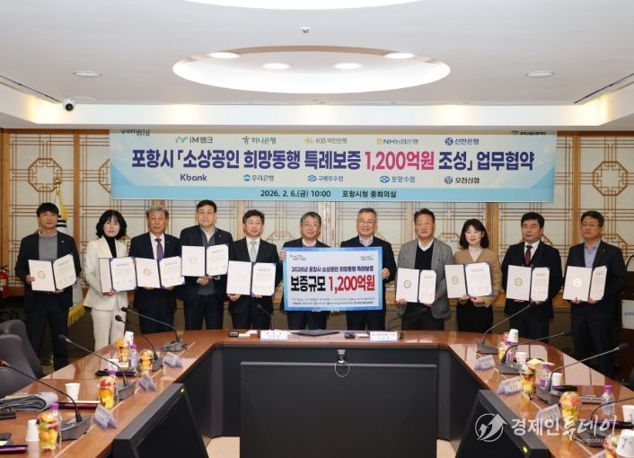경제인투데이 류현민 기자 | 포항시는 자금 조달에 어려움을 겪는 소상공인을 지원하기 위해 6일 경북신용보증재단 및 협약 금융기관과 총 1,200억 원 규모의 ‘희망동행 특례보증재원’ 조성을 위한 업무협약(MOU)을 체결했다.