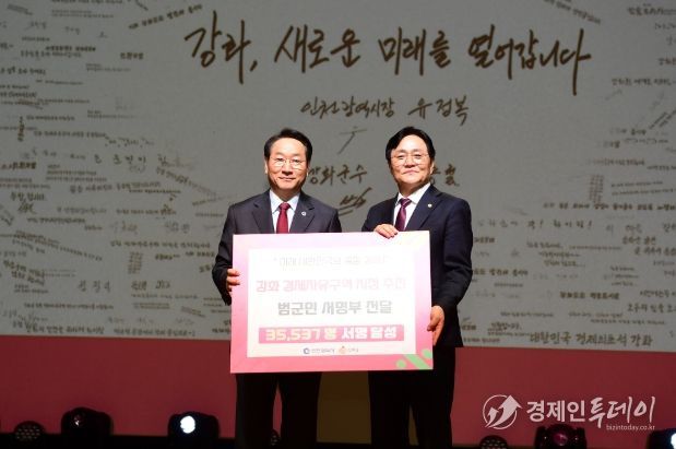 이어 열린 ‘생생톡톡 애인(愛人) 소통’ 행사에서도 경제자유구역 지정을 염원하는 군민들의 서명이 담긴 서명부를 유정복 시장에게 전달하며, 강화의 변화와 도약을 바라는 군민들의 뜻을 직접 전했다.