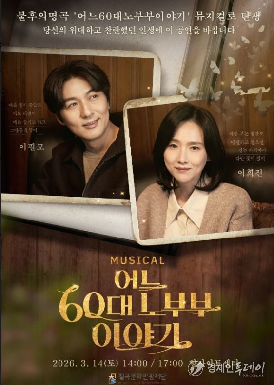 경제인투데이 류현민 기자 | (재)칠곡문화관광재단(이사장 김재욱)은 향사아트센터 공연장에서 '어느 60대 노부부 이야기' 뮤지컬 공연을 개최한다.
