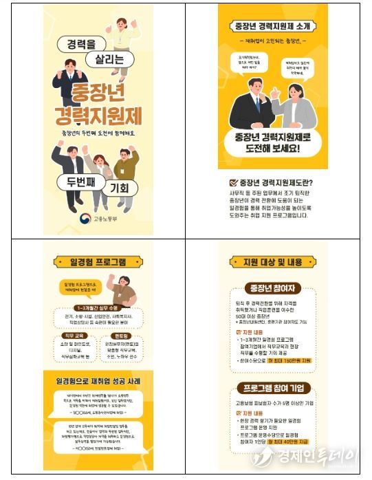 경제인투데이 류현민 기자 | 고용노동부는 퇴직 이후 새로운 분야로 재취업을 준비하는 중장년을 대상으로, 실제 직무 경험을 통한 경력 전환을 지원하는 “중장년 경력지원제”를 시행한다.