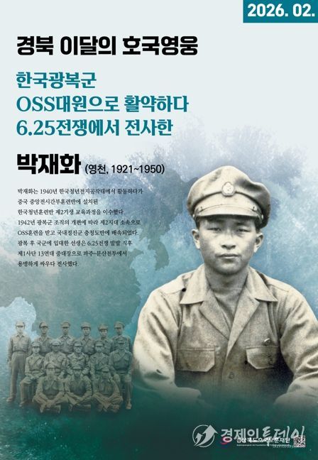 경제인투데이 류현민 기자 | 경상북도호국보훈재단은 2026년 ‘경북 이달의 호국영웅’ 2월의 주인공으로 영천 출신 박재화 선생(朴載華, 1921~1950)을 선정했다고 밝혔다.