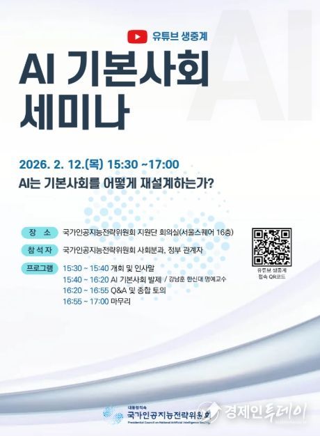 세미나 발제는 강남훈 한신대 명예교수가 맡아, AI시대의 기본사회 개념과 정책적 함의, 그리고 기술 발전에 따른 사회적 위험을 완충하기 위한 제도적 대응 방향을 중심으로 발표할 예정이다. 이날 세미나에는 위원회 위원을 비롯해 과기정통부ㆍ행안부ㆍ복지부 등 AI 기본사회 정책과 관련된 주요 정부 부처 관계자들이 참석한다. 세미나는 유튜브 생중계로 병행 진행되며, AI와 기본사회, 사회 정책에 관심 있는 국민 누구나 온라인으로 시청할 수 있다.