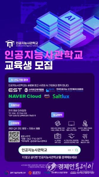 광주인공지능사관학교는 광주시와 과학기술정보통신부, 정보통신산업진흥원, 인공지능산업융합사업단이 지원하는 인공지능 전문인력 양성기관이다. 2020년 개교 이후 5년간 총 1528명의 전문 인력을 배출했으며, 최근 3~5기 수료생의 취·창업률은 76%를 기록하는 등 성과를 이어가고 있다.